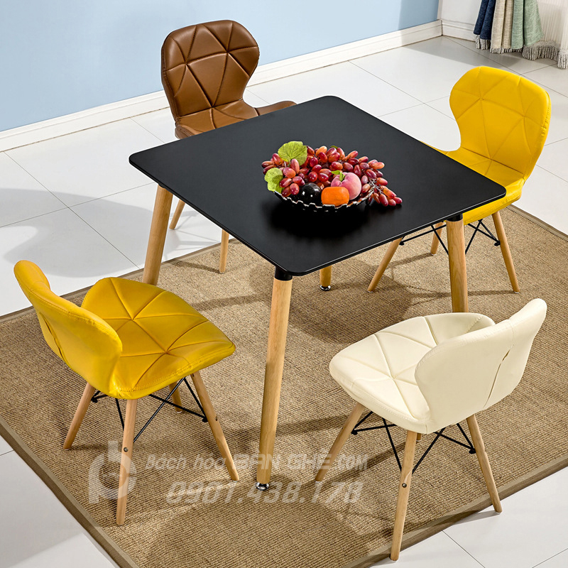 - 4 ghế nệm cánh bướmGLM12 chất liệu nhựa bọc da PU chân gỗ kiểu dáng xinh xắn. Ghế được sản xuất từ chất liệu nhựa bọc đệm da pu phần thân ghế với độ cong hợp lý, phù hợp vóc dáng người ngồi, đồng thời mặt ghế rộng rãi giúp người ngồi có cảm giác êm ái, thoải mái nhất. Phần chân ghế được làm từ gỗ sồi bền bỉ, chịu lực tốt. Ghế có các màu: xanh cây, vàng, đỏ, nâu, trắng, đen khách thoải mái lựa chọn theo tông màu yêu thích của mình.